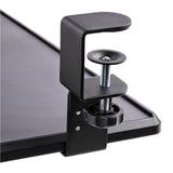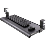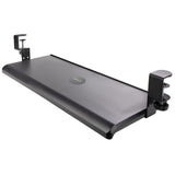 - HEIGHT ADJUSTABLE: The sliding keyboard tray clamps feature three height settings (3.9, 4.7, and 5.5 in) from the desk surface to the tray. This black clamp-on keyboard tray provides a large area (27.5x12.2 in) that supports up to 26.5 lb