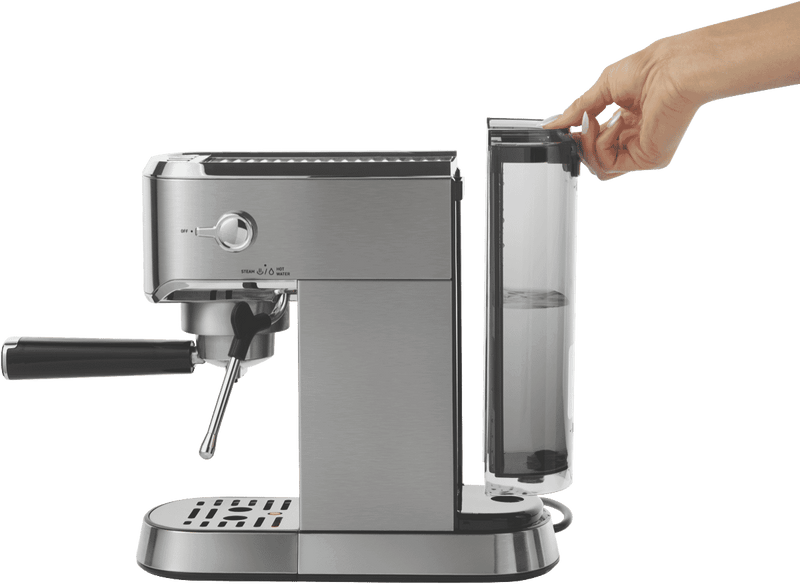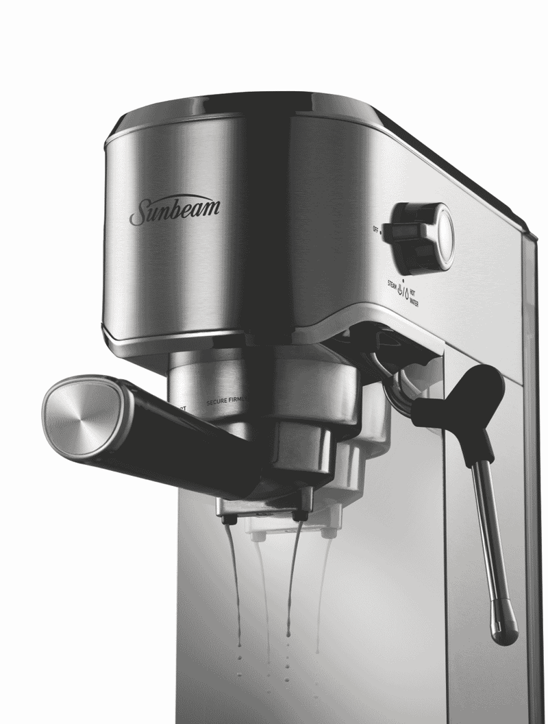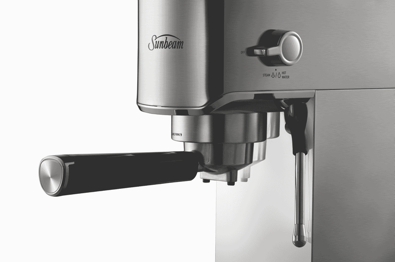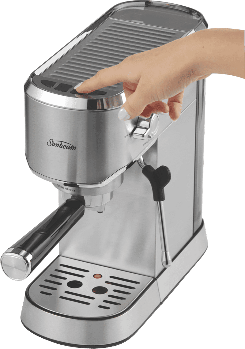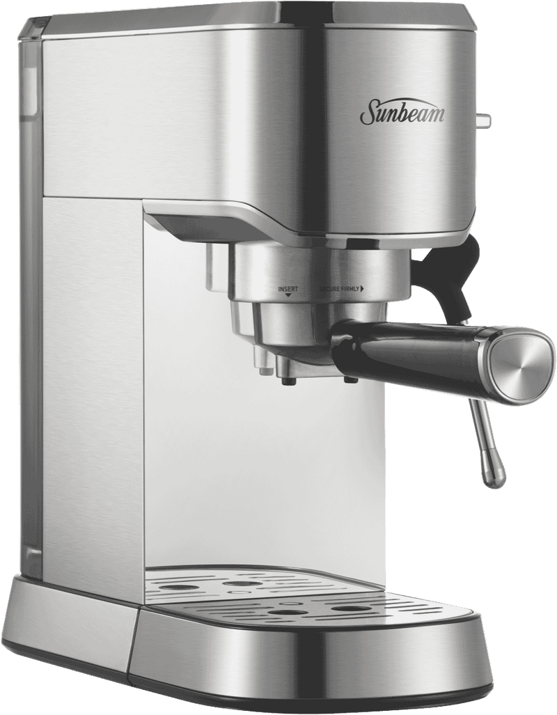 Savor barista-quality espresso at home with the Sunbeam Compact Barista Espresso Coffee Machine. This stainless steel manual coffee machine brews cafe-style coffee that will satisfy your inner barista. With a powerful 1250-1450 watt thermoblock heating system and 15 bar pump pressure, it can extract rich, full-flavored espresso from freshly ground beans.