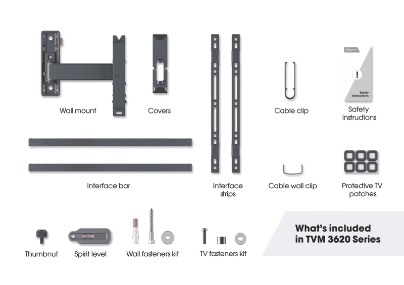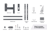 Installation is a breeze with its unique horizontal brackets that allow single-person mounting. Once set up, you can fully adjust your TV viewing angle, tilt down 15 to reduce glare, and swivel up to 180 to share the screen with others in the room. The open wall plate design also enables easy access to cables for a clean look. Bring your living room entertainment to the next level with the full motion capabilities of the Vogels TV Wall Mount. The manufacturer's part number for this product is TVM3625B.