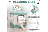 XL Portable Cat Toilet Litter Box Tray Foldable House with Handle and Scoop – Green